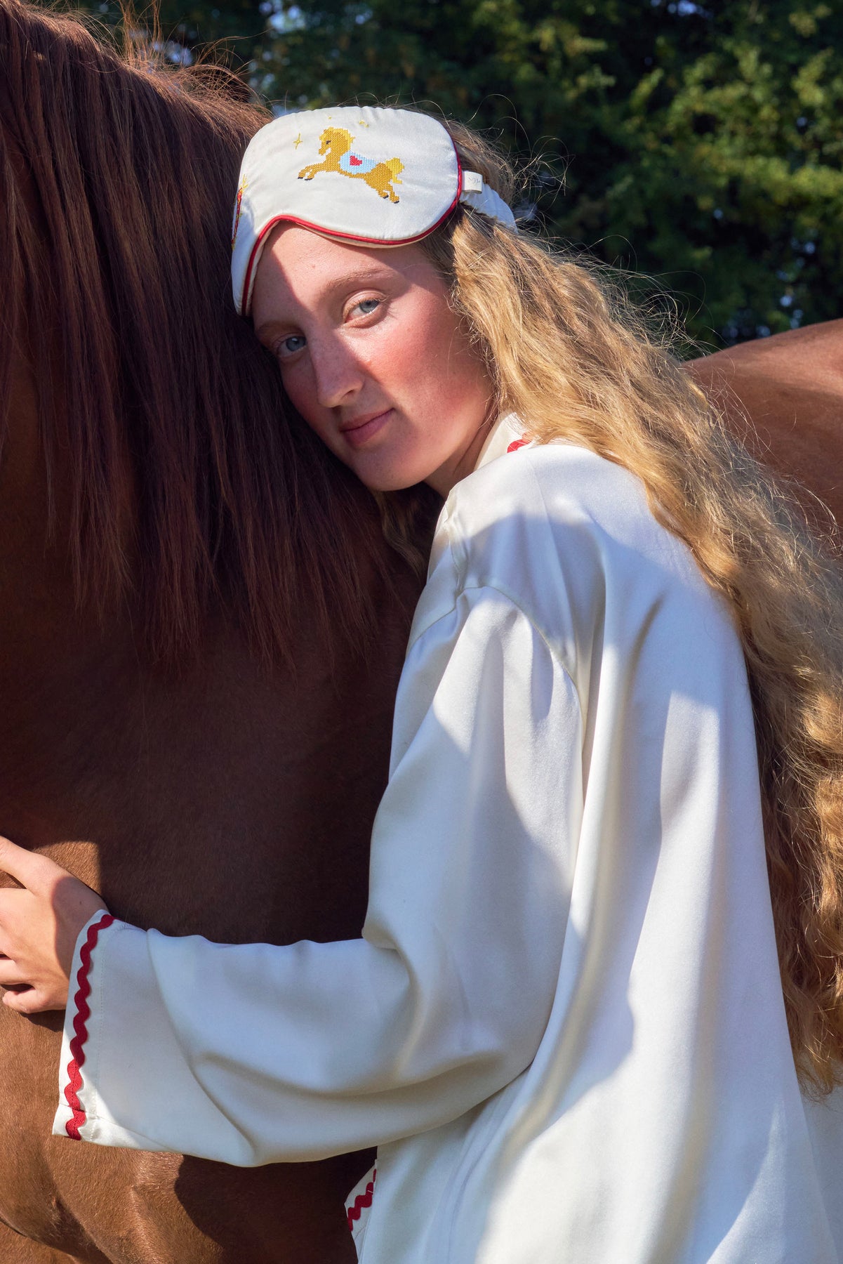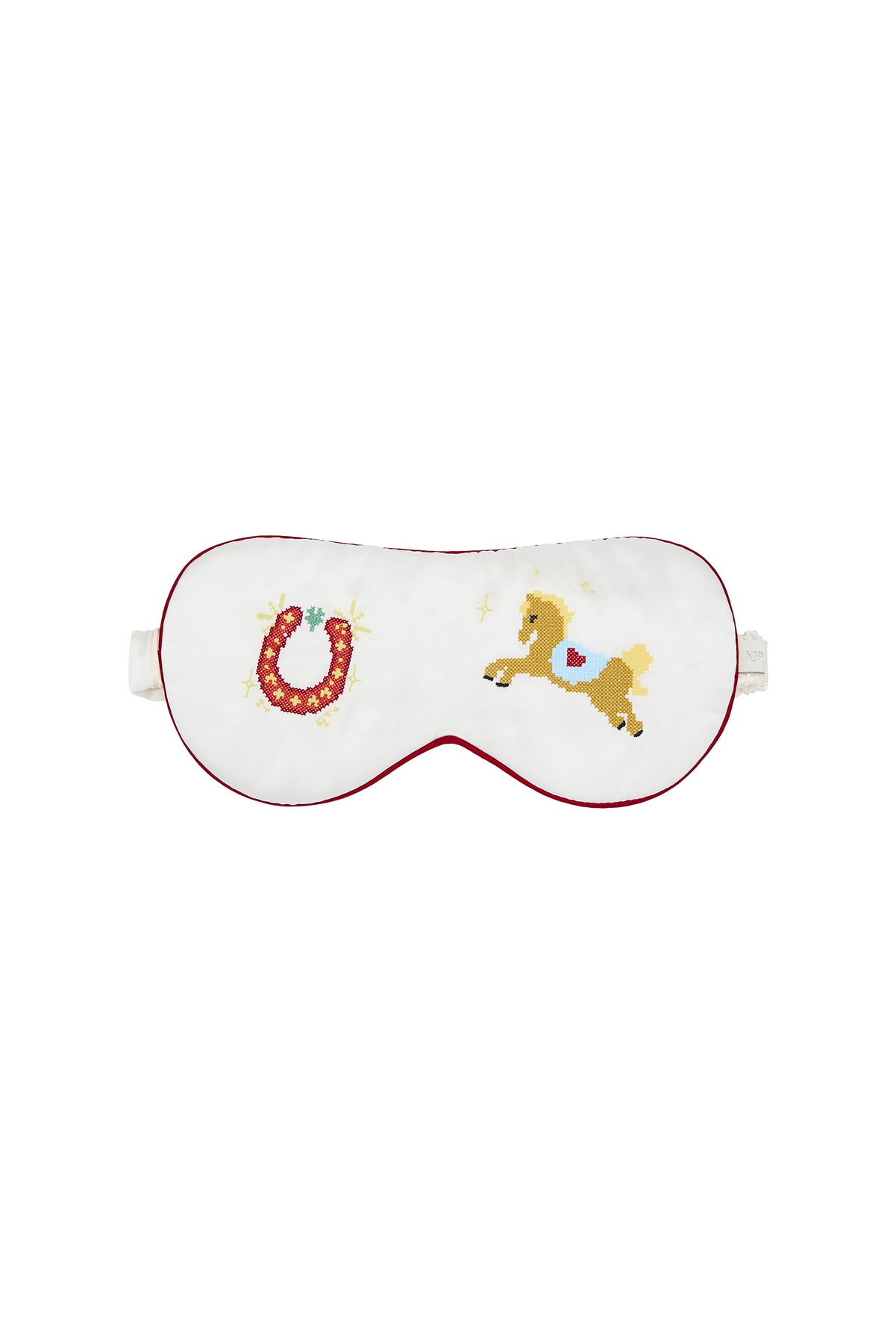 A 22mm mulberry silk sleep mask with hand-finished embroidery and contrast trim—smooth on skin, softly padded, and travel-ready.