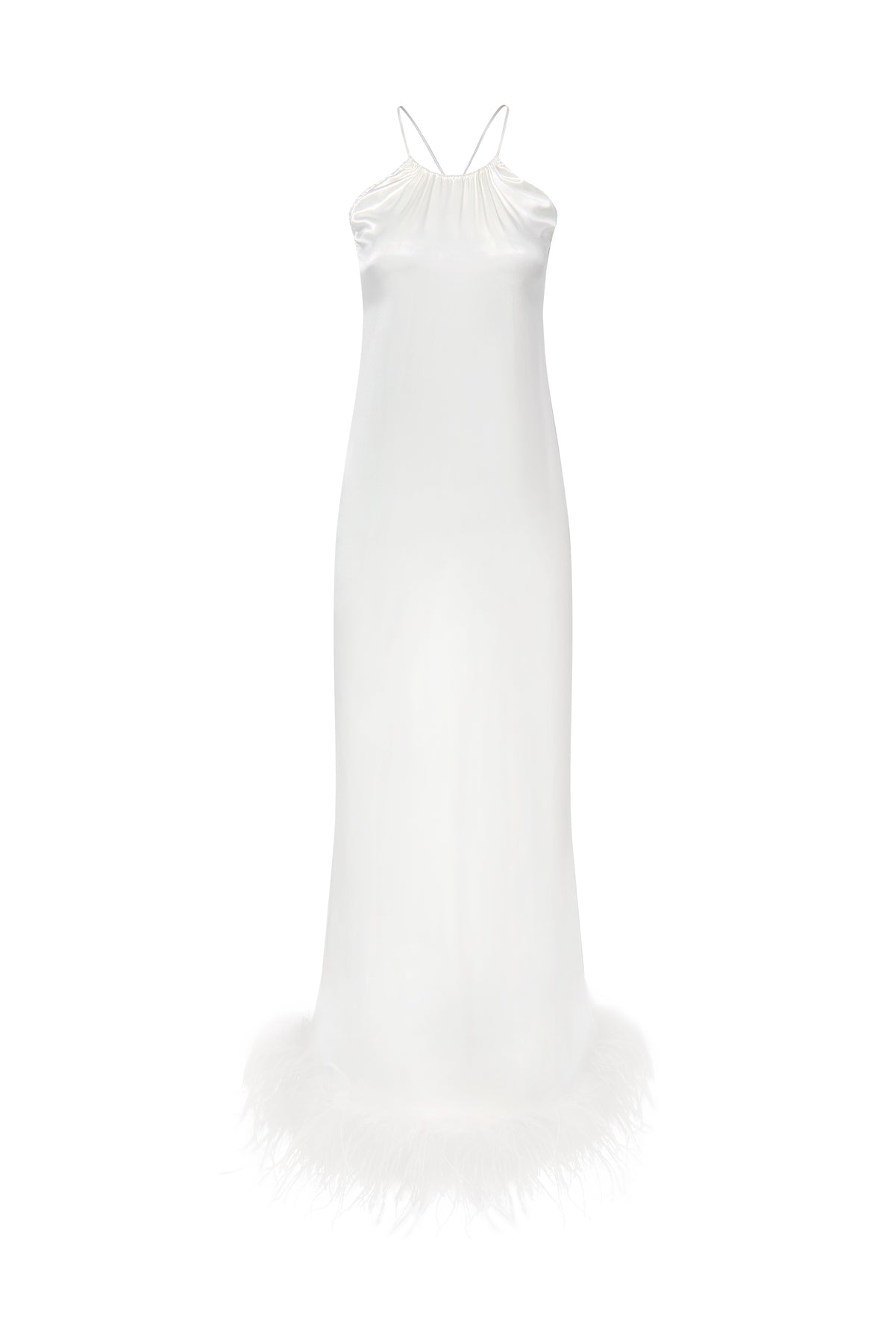 Bride-To-Be Edition | Halter Neck Silk Long Dress with Removable Feathers - Ivory