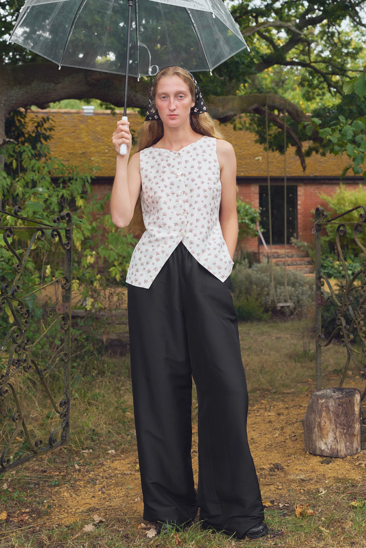 • Loose wide-leg trousers for effortless mobility.