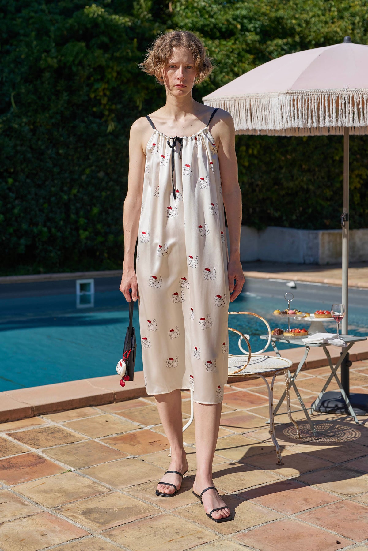 Kiki Cherry Cat 22 Momme Silk Slip Dress
