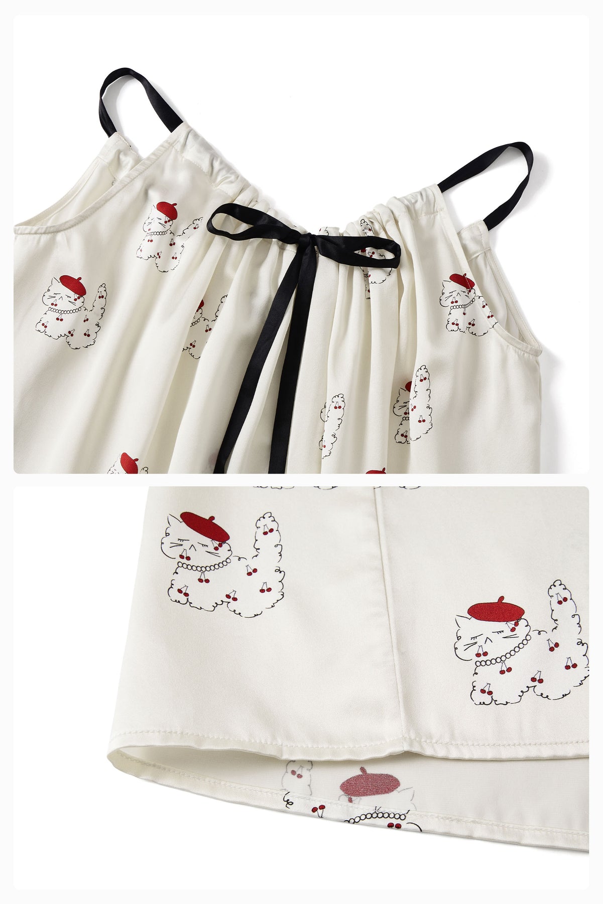 - Cherry Cat Print Design – Playful all-over print with a light, feminine feel