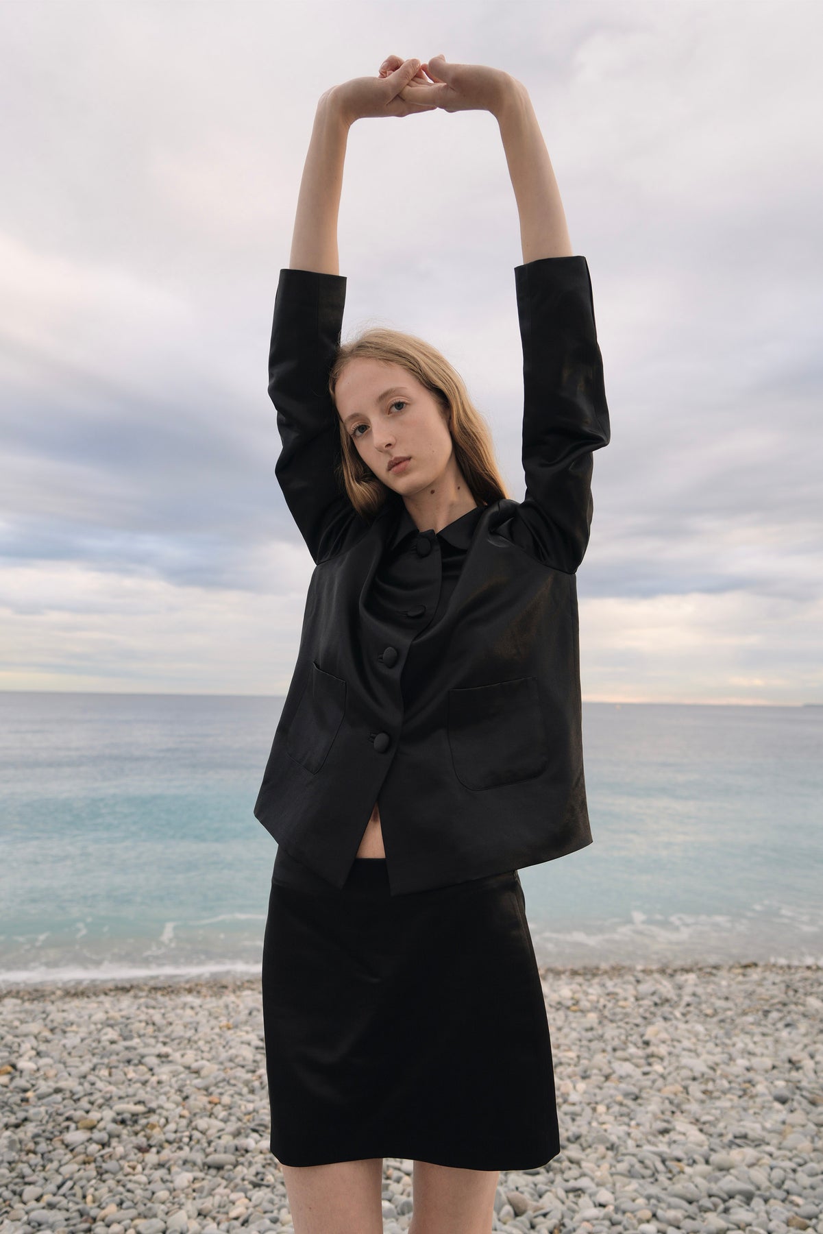PAJA Dinner Hour Silk-Wool Satin Black Jacket